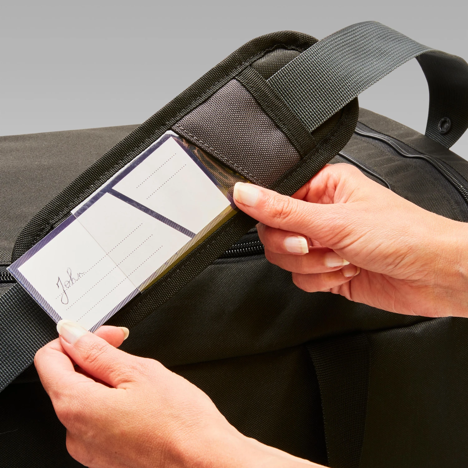 We added a pocket to the shoulder strap where you can store a card with your contact info. This will help you correctly identify your bag when in a group.