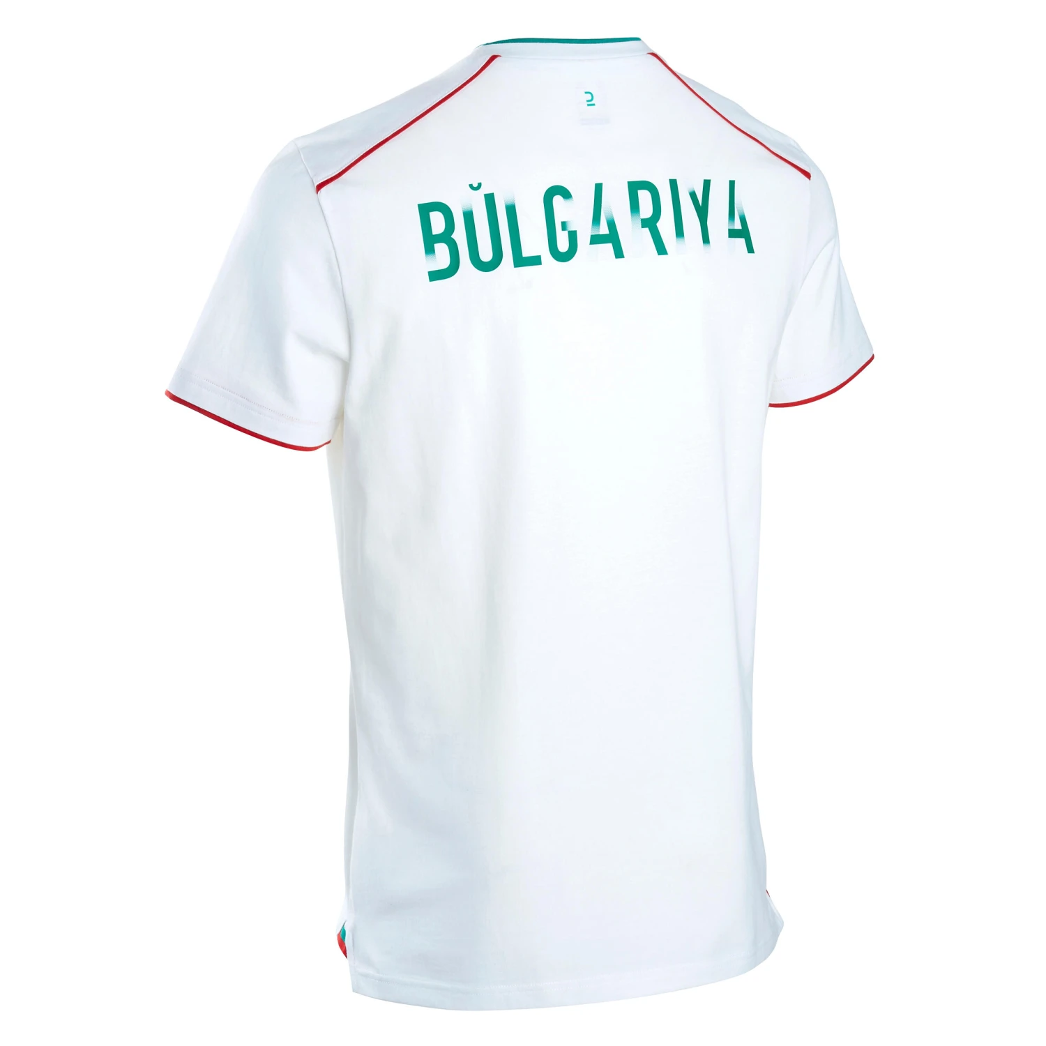 With the next football World Cup just around the corner, our designer has created this modern T-shirt with a fitted cut and details that give it an elegant yet casual touch, from the double stitching on the arms and collar to the lines down the back in the country’s colours, and the small flags at the bottom of the T-shirt. You too can now proudly wear your team’s colours in any situation.