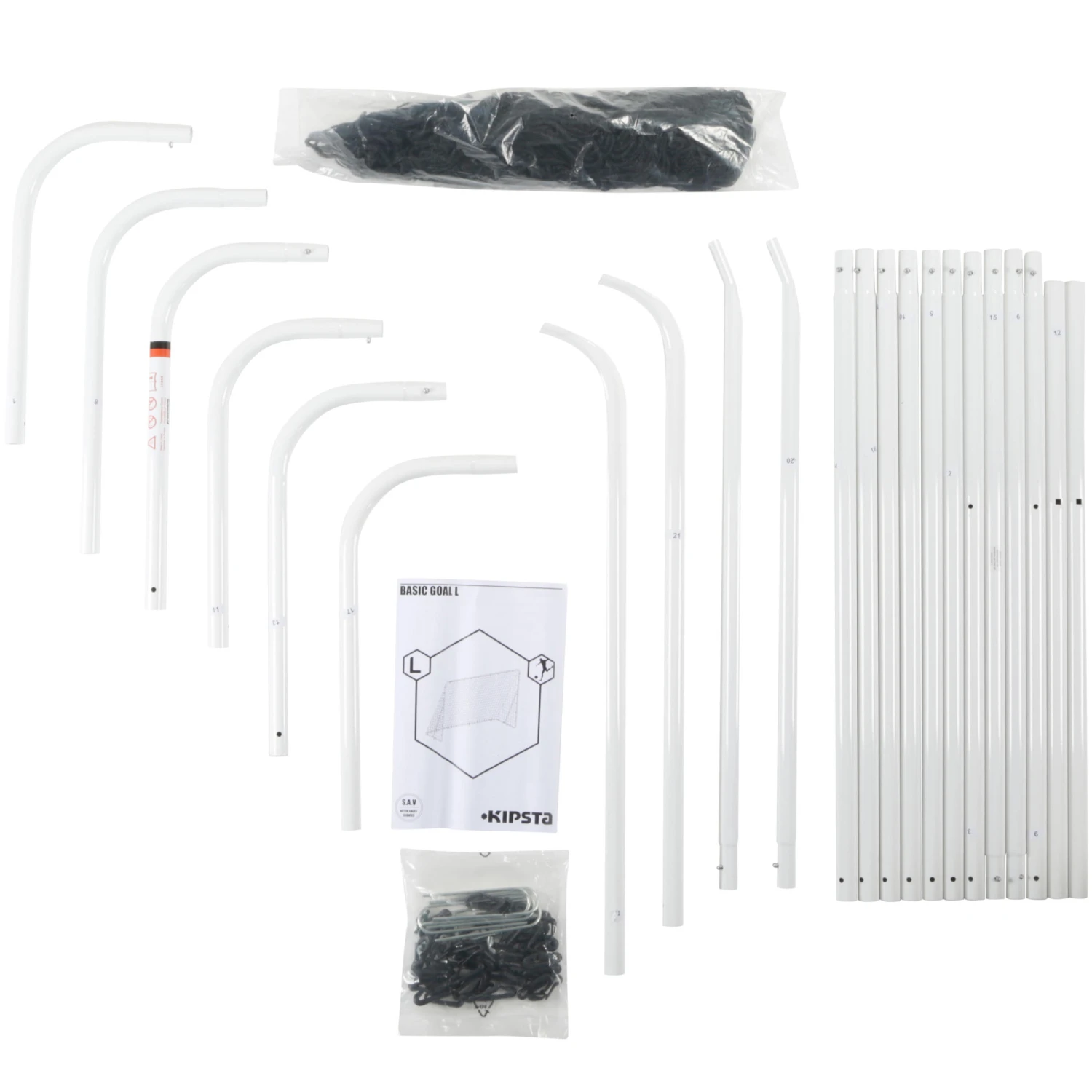 6 stakes help to pin down the goal into the grass.